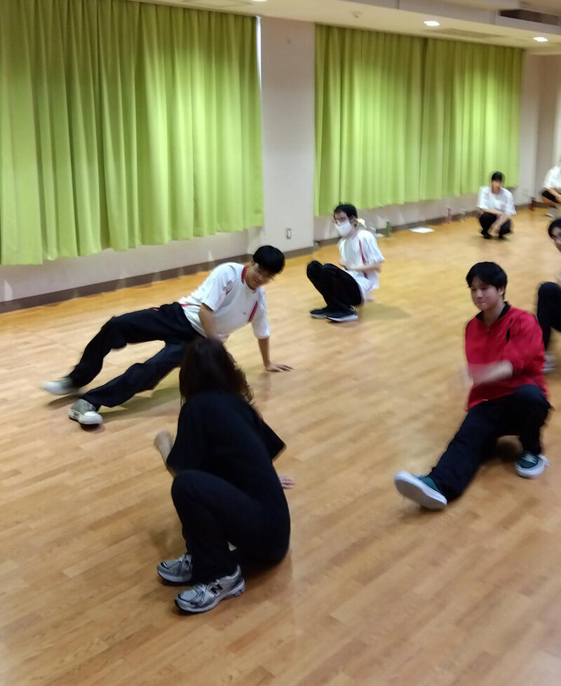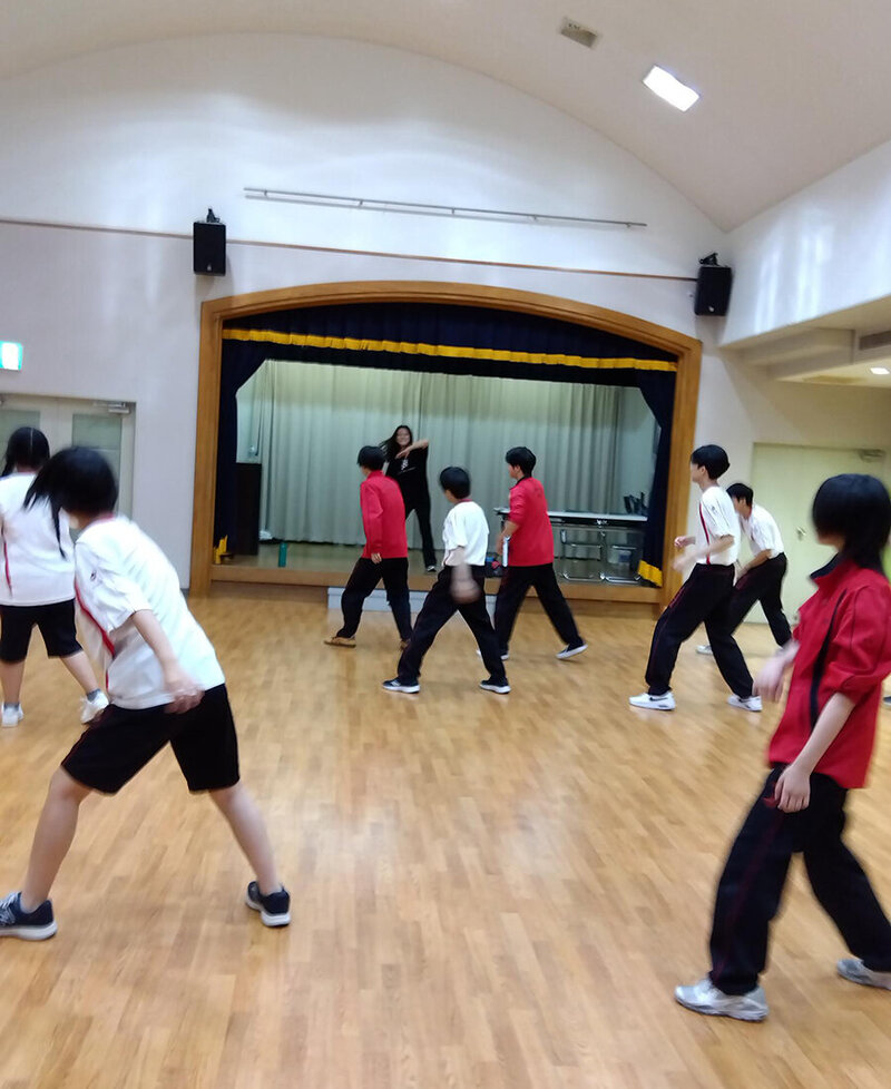 今日の体育の授業はダンスでした。苦戦しながらも音楽に合わせて、一生懸命取り組んでいました。最初はぎこちなさも見られましたが、授業終了間際には、ホールが軽やかな動きと、笑顔がいっぱいあふれていました♪
